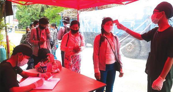 位于果敢自治区老街市的清水河口岸,大部分在中国务工的缅甸公民都从这里返回,目前,清水河市新冠肺炎 Covid-19疫情防控委员会在该口岸设立了检疫站,对返乡公民进行测量体温,健康检查,免费分发口罩和矿泉水,并安排接送返乡的工作。